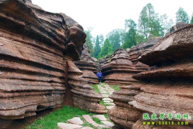 在早奧陶紀時期,這里曾是一片淺海環(huán)境,經(jīng)過地質(zhì)運動,海底被抬起,在大自然風化、水蝕、溶蝕和重力的外動力地質(zhì)作用下,紅石林地面巖石被分割打磨成石牙、石柱、石林等形態(tài)怪異的海底地質(zhì)奇觀。不用多說,還是自己體驗吧。哦,別忘拾個海貝帶回家,順便聽我擺個土家人的龍門陣吧。